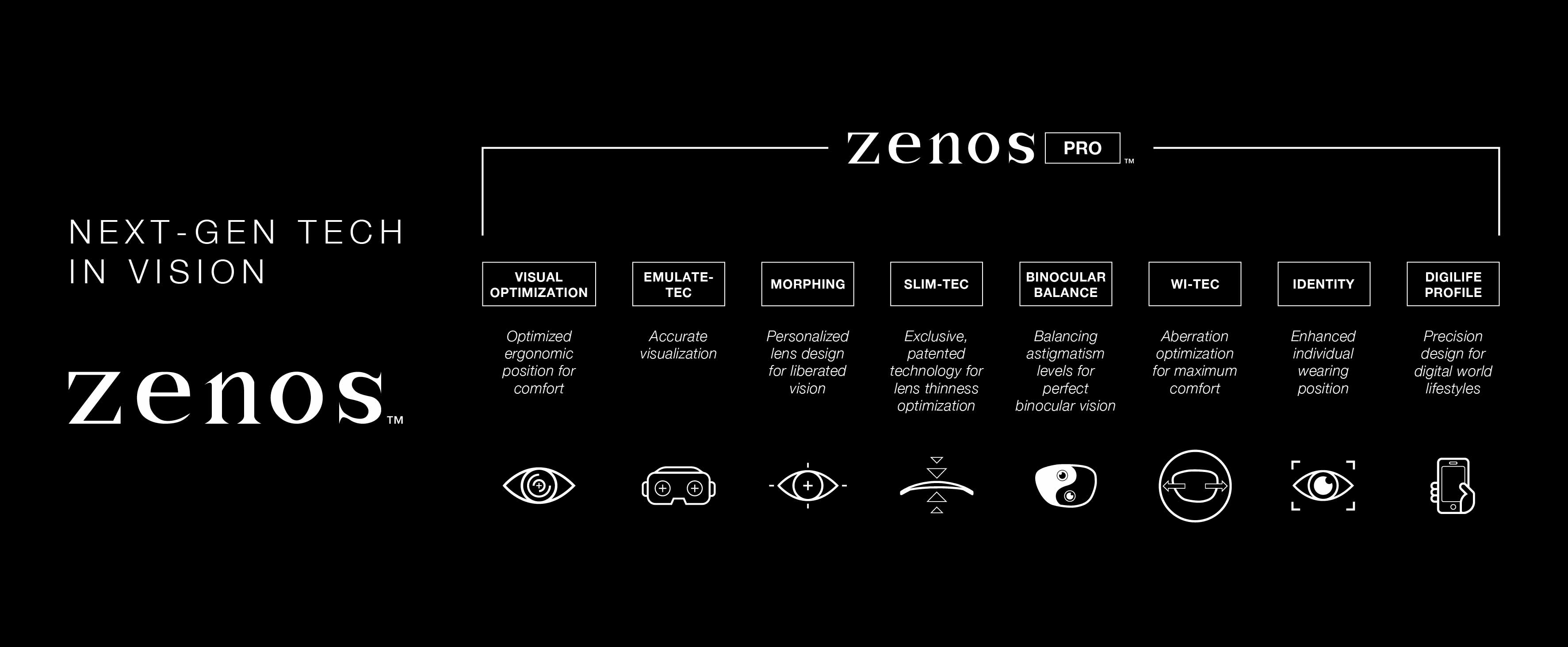 Zenos Pro™ is advanced individual digital progressive lenses with VISUAL OPTIMIZATION, EMULATE-TEC and MORPHING technology adapted to the wearer for maximum comfort.